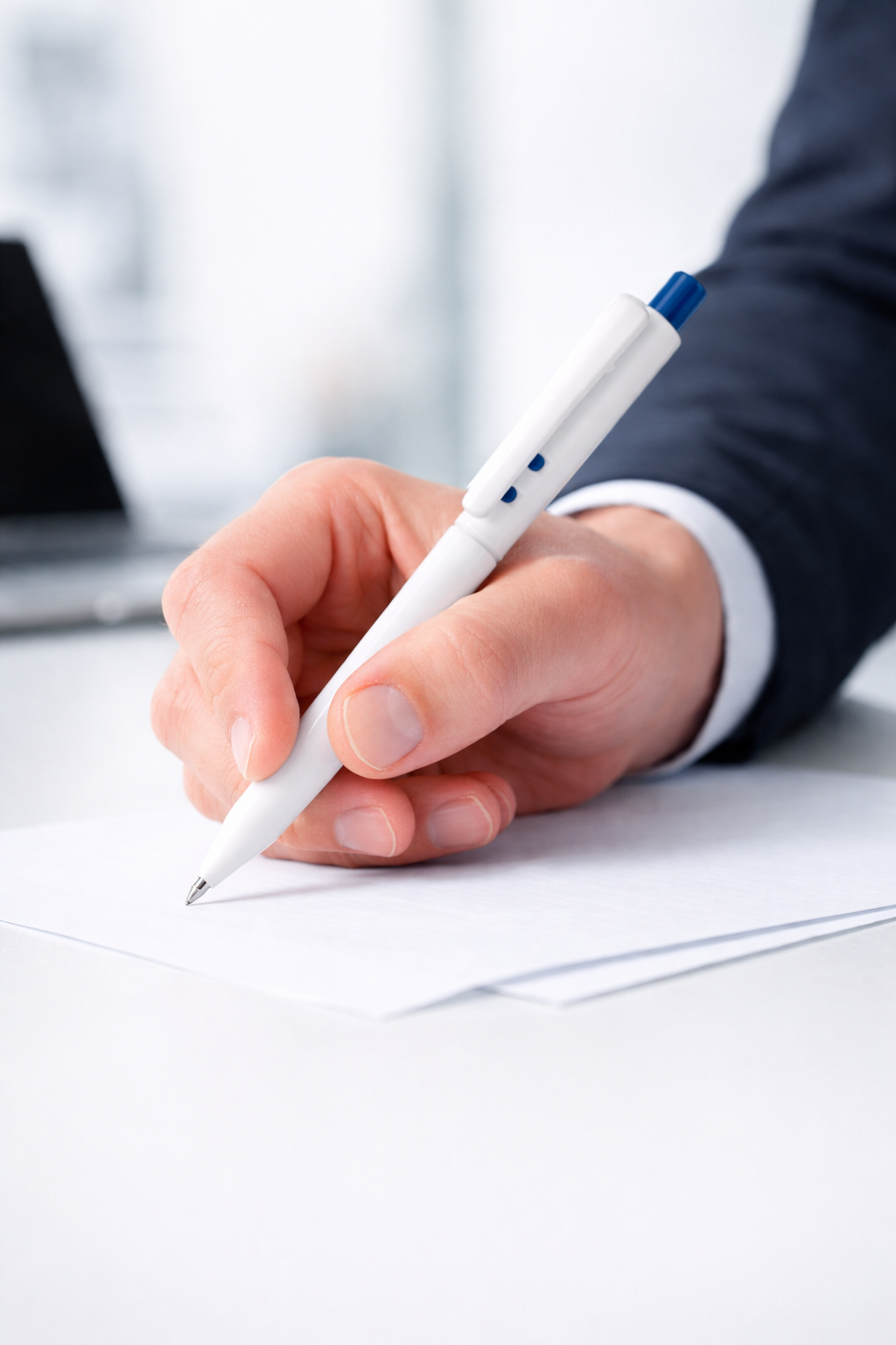 Caneta plástica personalizada escrita azul