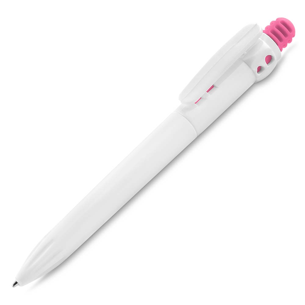 Produzida em plástico resistente, essa caneta conta com sistema retrátil, oferecendo mais praticidade no uso diário. Seu mecanismo de acionamento facilita a utilização sem necessidade de tampa, tornando-a perfeita para ambientes corporativos, eventos, feiras e ações promocionais.